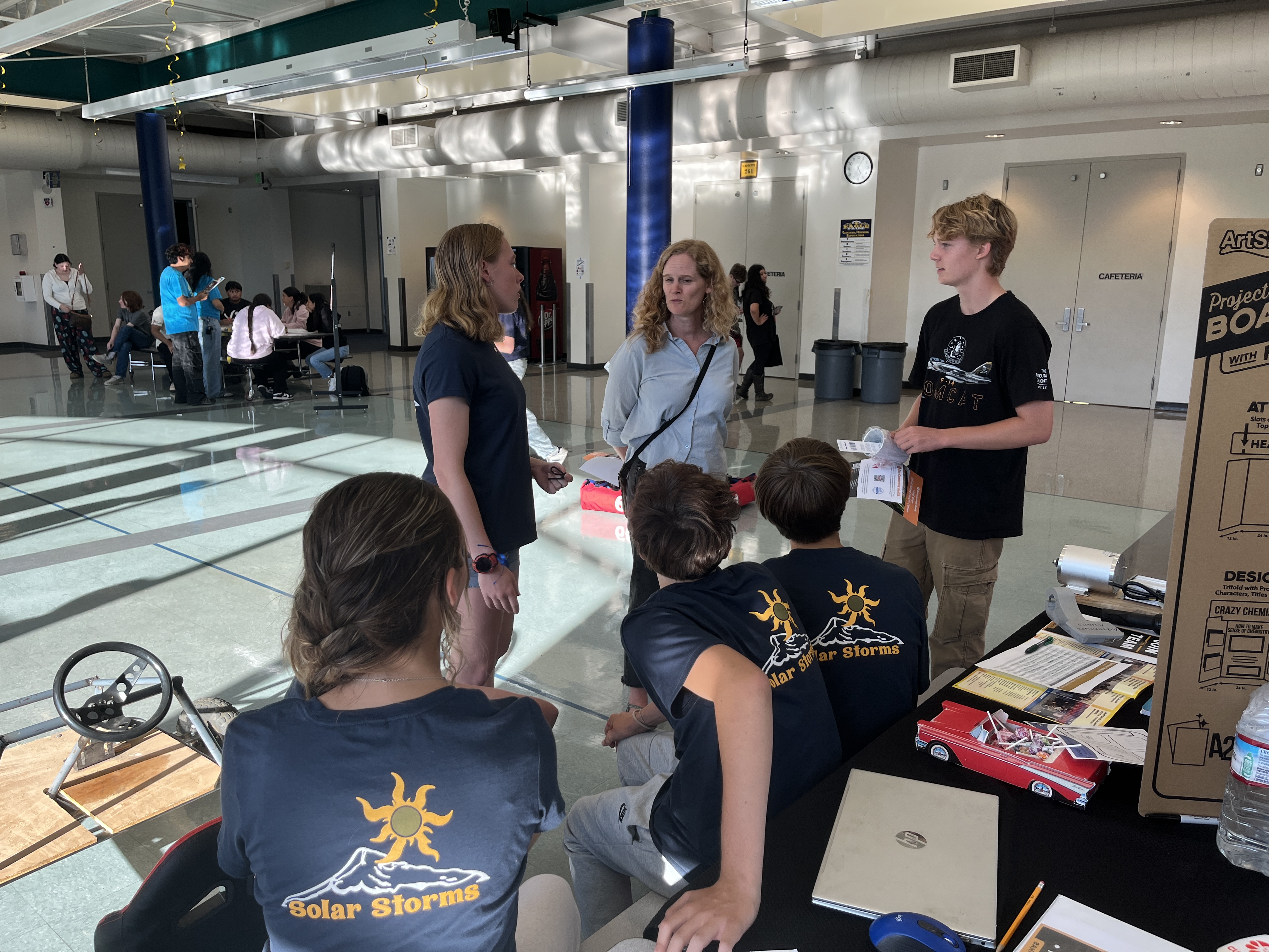 At the Hood River High School Club Fair, the Solar Storms team set up an eye-catching booth to share our mission and recruit new members. Surrounded by bright posters, solar panels, and a small go-cart that participants could sit in, we invited students to join our exciting journey of designing and racing a car, powered entirely by the sun. Team members talked with curious classmates about engineering, and the thrill of competing at the Solar Car Challenge in Texas in July, 2026. It was an inspiring day of connecting with future innovators and building momentum for our growing team.